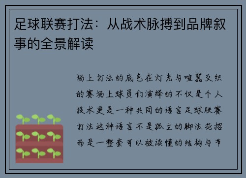 门槛高,节奏快,边线风云变幻,攻防转换像秒表一样精准。从后场的高线压迫到前场的快速反击,球队讲求体能、默契与执行力。英式足球强调一线的对抗和空间利用,长传与地面传球并存,边路宽度让球员有更多个人表演的...