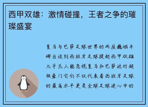 北京时间今晚,英超第xx轮迎来了一场备受瞩目的焦点战:纽卡斯尔主场对阵曼城。上半场战罢,比分定格在0:0,双方虽未破门,但比赛精彩程度丝毫不减。作为卫冕冠军的曼城,本场比赛面对状态火热的纽卡斯尔,压力...